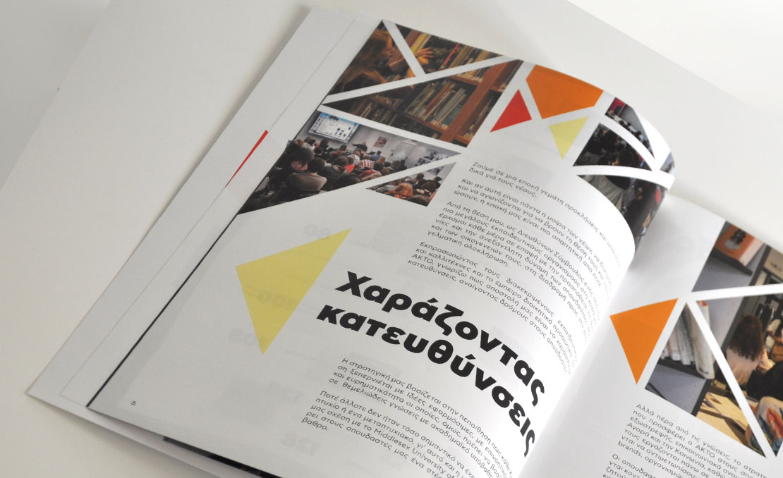 Editorial Design for the yearly edition of AKTO's Art & Design College magazine. Art Direction and Design: Athina Konstiantou and Elisavet Sampani
